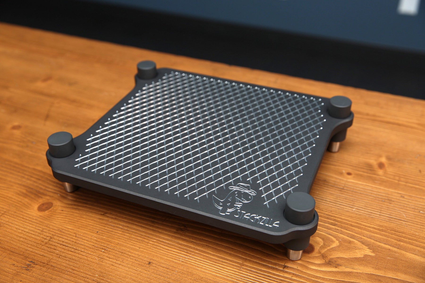 Beautiful USA made solid machined aluminum isolation stand gives your electronics or speakers a great looking platform that improves the appearances while working to absorb and isolate vibration and noise.